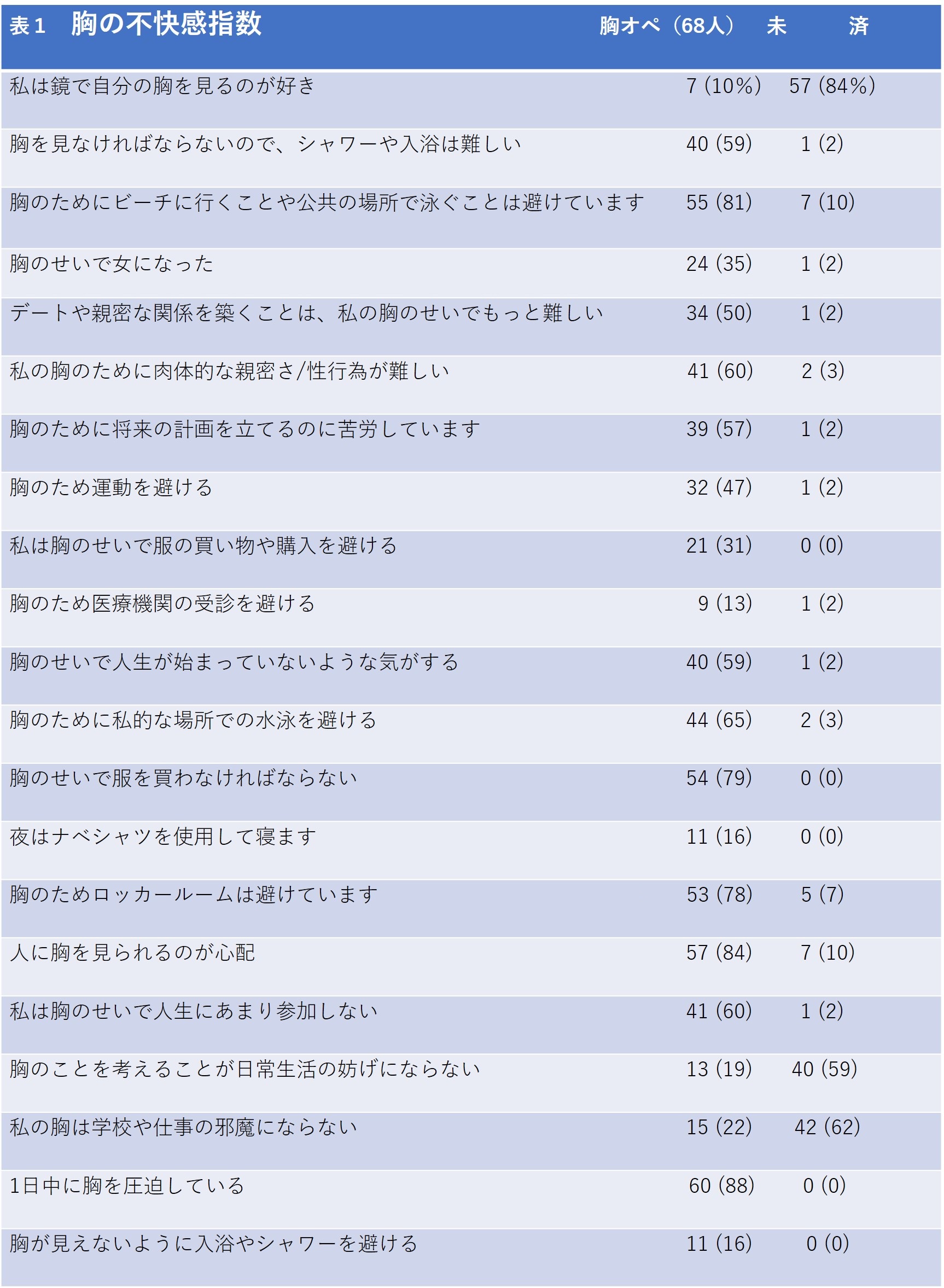 胸の不快指数(表1)
