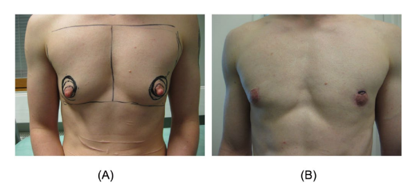 乳房が大きければ大きいほど、皮膚の質が悪ければ悪いほど、そして余分な皮膚の量が多ければ多いほど 余分な皮膚の量が多いほど,女性から男性への乳房切除術で必要な切開とその結果生じる傷跡は長くなった。