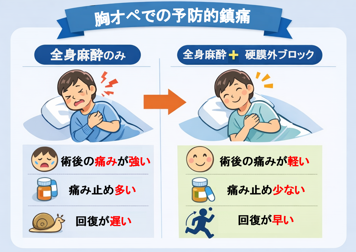 - 術後の痛みの軽減