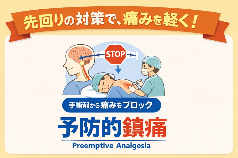 手術前から痛みの伝達を抑える予防的鎮痛(Preemptive Analgesia)の考え方に基づく方法です。